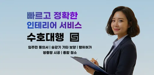 수호대행은 입주민 동의서 대행, 승강기 보양, 행위허가, 방충망 시공, 종합 청소 등 인테리어 관련 전문 서비스를 제공합니다.